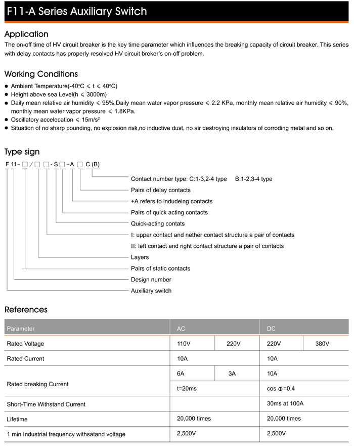 F11-A Series Auxiliary Switch